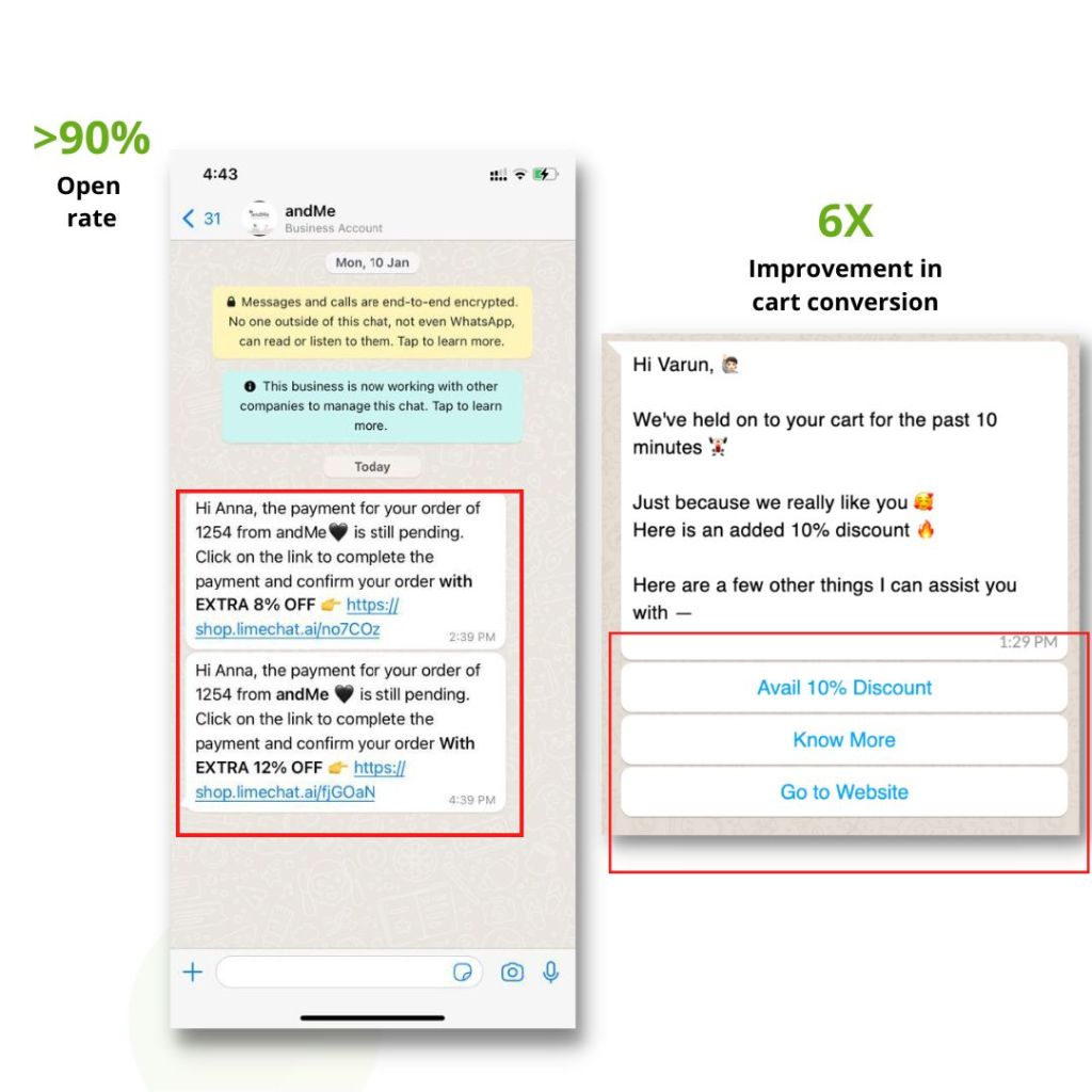 A WhatsApp Chatbot allows you to connect with customers on WhatsApp and engage them in real time. The bot can help with customer service and sales, including shopping cart abandonment and order status updates. Moreover, it’s easy to set up—you can even use the same Facebook Page or Business Manager account that you use for your other digital channels!